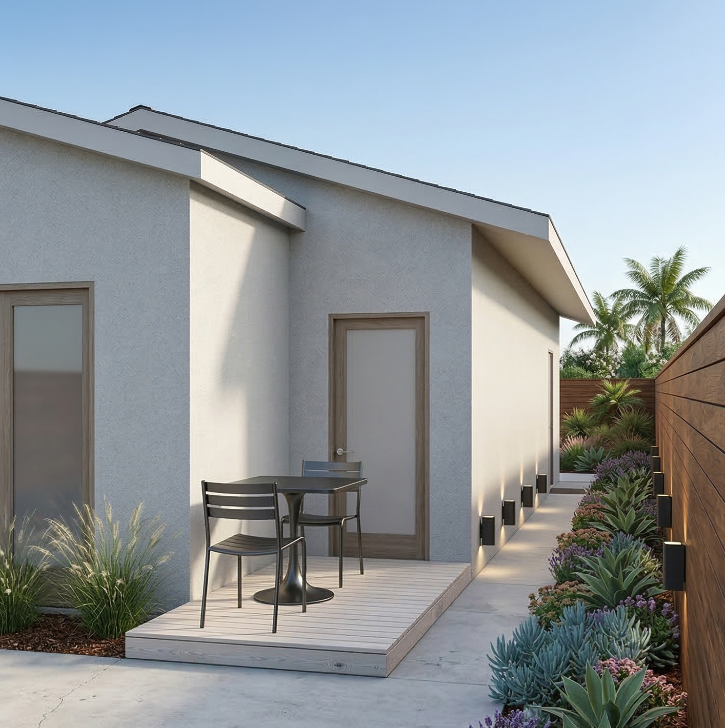 The Oceanside Boutique Remodel serves as a premier example of our 'Build-Ready' philosophy. This comprehensive design and site feasibility study focused on transforming a compact outdoor environment through precision hardscape layout, bespoke planting, and advanced LED lighting.